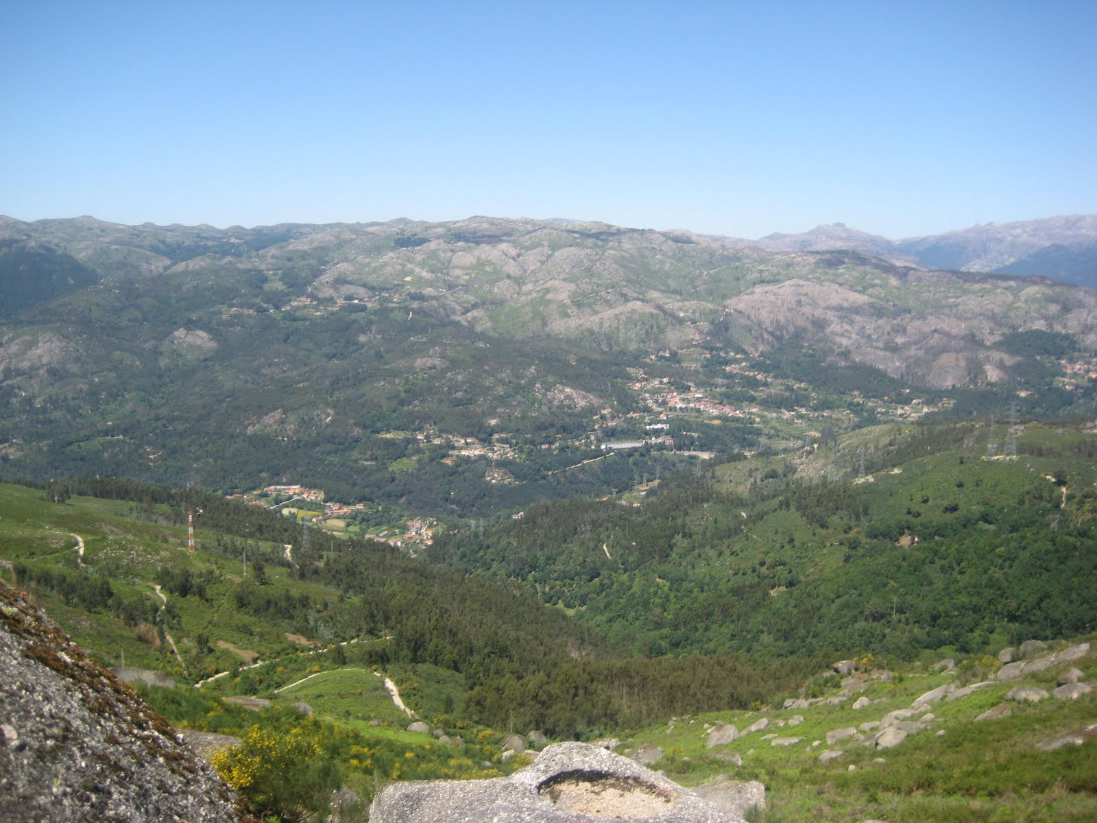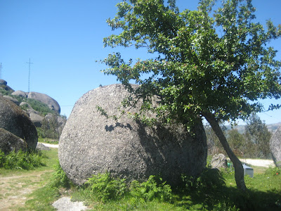 Ontem, fomos fazer mais um piquenique. Desta vez para um monte alto, cuja predominância de granito é bem visível. Estava bastante vento... acho que me constipei à custa do mesmo. Fomos para o Monte de São Mamede, no concelho de Póvoa de Lanhoso. Um promontório de onde se tem visibilidade quase até ao mar. Vê-se o Sameiro, Braga, o Gerês. Uma paisagem linda.