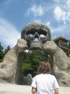 A caminhada de divertimento em divertimento continuou. O que menos gostaram foi da roda gigante. O Tiago teve algum medo. Mas, medo, medo tiveram depois de uma pequena pausa para comer no Castelo Assombrado. Os gémeos quiseram ir num vagão cada um. Eu fui com o príncipe mais velho. O João foi o primeiro a partir. O Tiago foi no fim. Aquilo é muito escuro,mas até estava a correr bem. Numa curva estava um homem mascarado a lançar borrifadelas de água sobre as pessoas. Quando lançou água sobre mim e o Diogo, ele simplesmente se enfiou com a cabeça pelo carro adentro e aí ficou com a cabeça, a meus pés, até tornar a ver a luz do dia. Nunca mais saiu daquela posição. O Tiago ainda foi pior, como vinha atrás e só, ouvi-o a chorar, berrar pelo pai e pela mamã. Coitado! Foi cá um susto, o maior susto da vida dele de certo. Quando as portas abriram para o exterior, ainda o vimos a dar um salto de pânico: que mais lhe iria acontecer!!!? Foi o único divertimento que não quiseram voltar, e penso que tão cedo não vão querer experimentar.