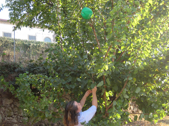 e, como tudo estava a correr bem... a bola que os príncipes levaram para ocuparem o tempo ficou presa numa árvore, sem vontade de sair de lá.
