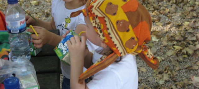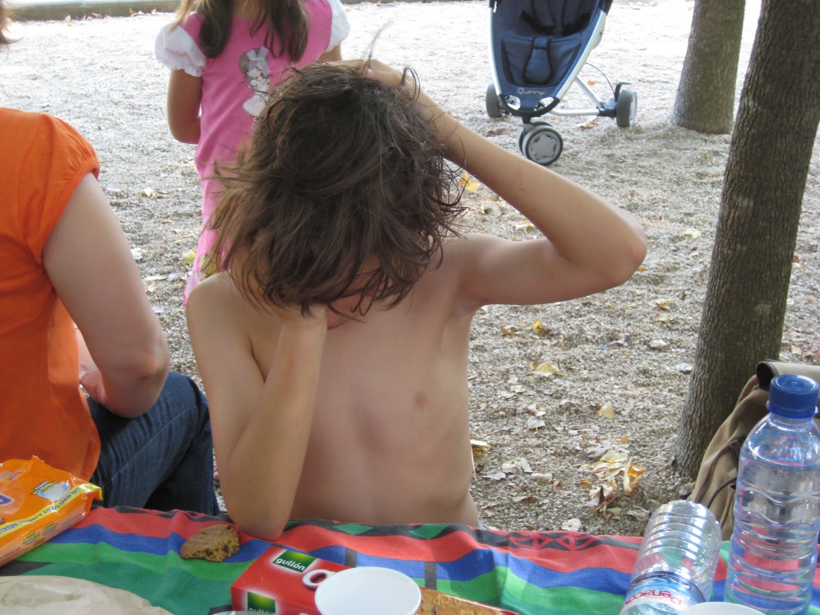 Os príncipes lá ficaram a tentar tirar a bola, que estava alta. E o que se atira à bola para ela cair? Paus, pedras...sim, pedras! O problema das pedras é que podem magoar, e eis que... uma pedra acertou n cabeça do João... Tivemos uma cabeça partida com muito sangue.