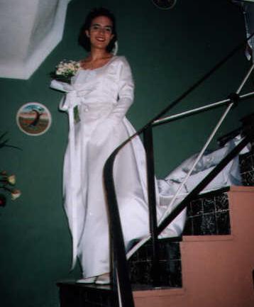 O meu vestido foi a minha mãe que fez, com base no que eu queria e lhe disse. E, não é que era perfeito, lindo, e me ficava mesmo bem. Não houve loucuras atrás do vestido ideal, não houve veste e despe, não houve orçamentos furados, não houve choros nem desesperos...