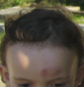 Até que ouvimos um estalo, logo de seguida o som estridente do choro do príncipe mais novo. Ao correr atrás de uma bola, colocou um pé (melhor, a perna) num buraco quase dissimulado que existe num edifício do Parque Nacional. Mas que perigo está ali! O príncipe mais velho, quando corria para socorrer o irmão, caiu na mesma ratoeira, torceu o pé, ficou descalço e com a perna negra e magoada. O João, foi buscar mais abaixo a bola que o Afonso ia atrás, eis que, havia outro buraco, também este dissimulado, outro a magoar-se. Caiu, esfarrapou um joelho. 3 magoados, mas o pior o Afonso. Um hematoma na cabeça, uma perna negra, nariz arranhado. Chorou imenso, tadinho.
