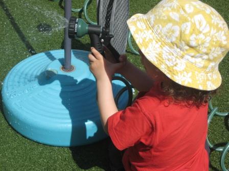Aprendeu a abrir a torneira de água da mangueira e era vê-lo a molhar-se todo e a molhar os outros. Divertiu-se imenso com a água. Que bons são os dias quentes.