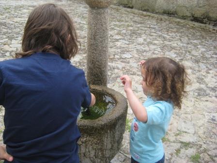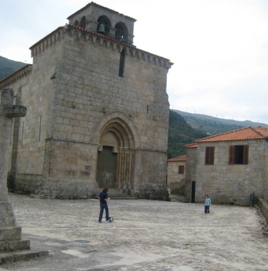 A igreja românica embora fechada, o seu adro serviu para um rápido jogo de futebol e na sua fonte não hesitaram em molhar as mãos.