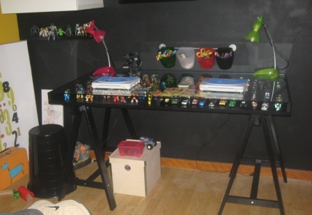 Colocámos os móveis na parede. Agora parece mais uma quarto de adolescentes. O príncipe mais velho até já estava disposto a mudar de quarto.