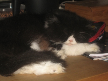Esta tem sido uma das minhas companhias nos últimos dias. A companhia durante 2 semanas em casa. Fala pouco, e podemos dizer que dorme mais que eu!
