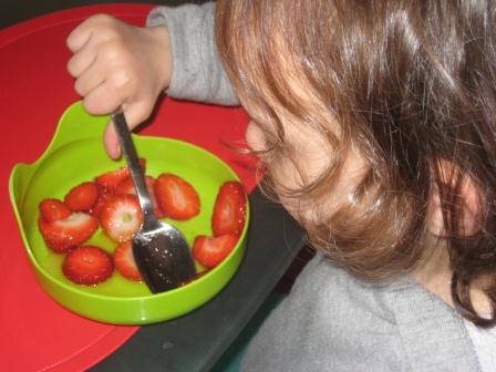 Comer morangos, o que o príncipe mais novo adora fazer.