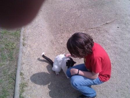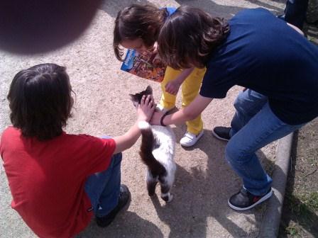 Aparece sempre um gatinho desejoso de umas festas, e que tem logo toda a atenção. Ninguém se faz rogado a uma sessão de festinhas.