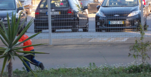 No pavilhão não se conseguia estar. Solução, aguardar calmamente (ou dentro do possível) no exterior. O príncipe mais velho deserto por se vir embora, o príncipe mais novo a explorar os cantos à casa: corridas, no meio das plantas, no parque infantil... Eu, claro, atrás dele ou sempre vigilante.