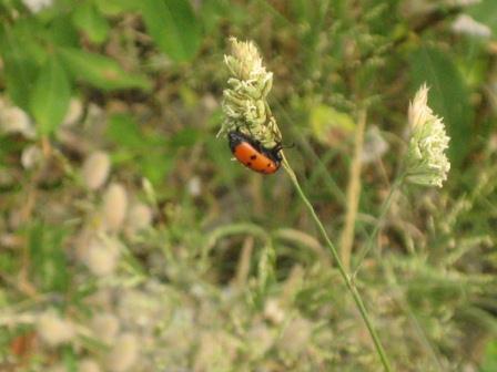 Insectos diferentes, que parecem joaninhas, mas na realidade não são, e que parecem adorar finas ervas, balançando ao sabor do vento.