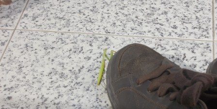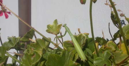 Hoje, ao abrir a varanda, para apanhar a roupa o que vejo? Um louva-a-deus. Mesmo à porta do quarto dos gémeos. O João, corajoso, disse logo que me livrasse daquele bicho, que o tirasse de perto do seu quarto. Coloquei-o nas minhas sardinheiras, sempre será útil a livrá-las de outros insectos... espero!