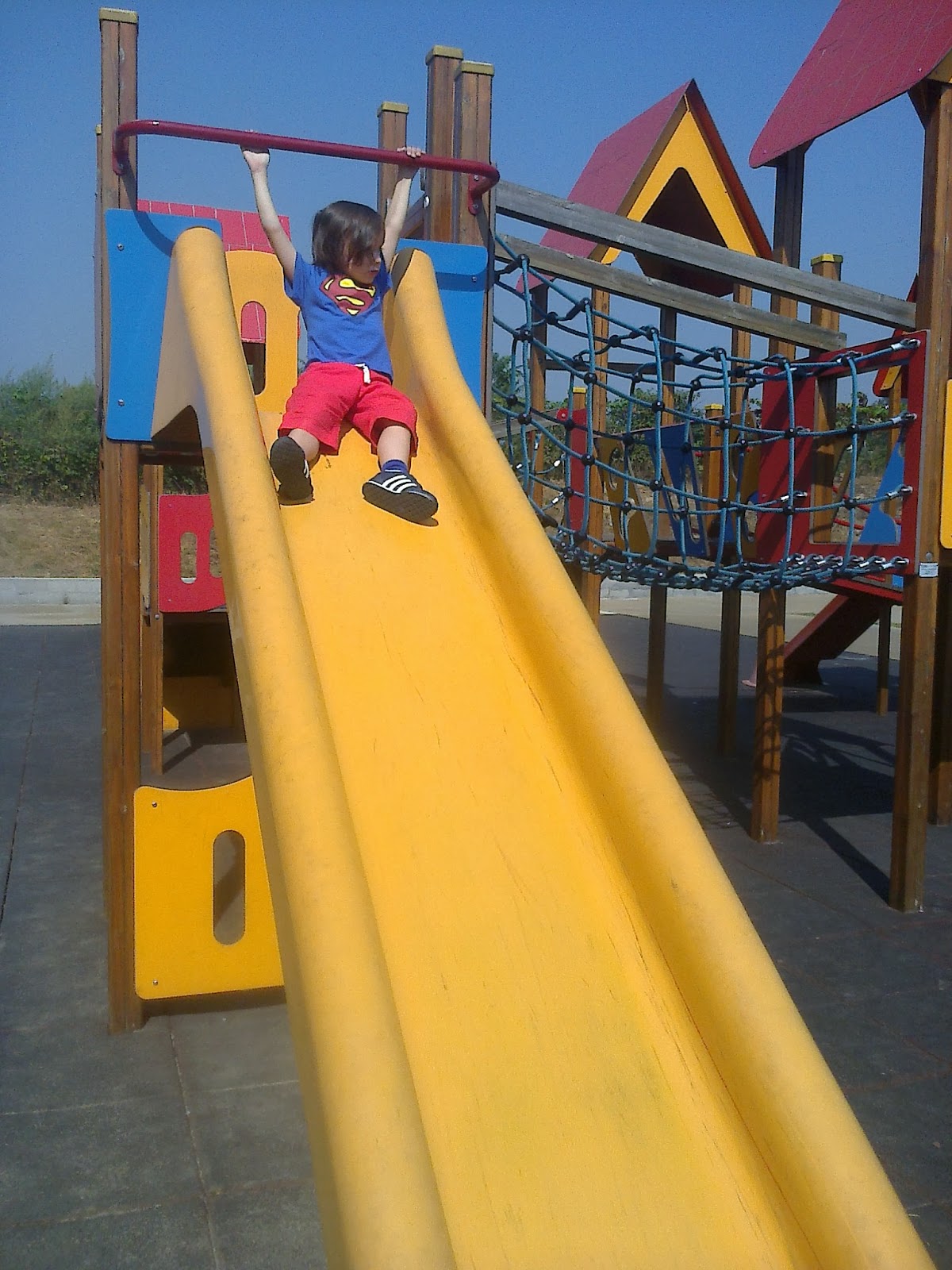 Escorrega em setembro 23, 2013 Obter link Facebook X Pinterest Email Outras aplicações Sempre que vou buscar o Afonso à escola, à hora de almoço, ele corre para o parque infantil para o escorrega. Tem sempre que escorregar pelo menos uma vez. Por vezes tenta furar o combinado e dá mais que uma volta. Adora escorregas. Comentários