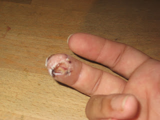 Ficam as imagens para nunca mais me lembrar de colocar a mão por baixo de nada pesado. Para mais tarde recordar...