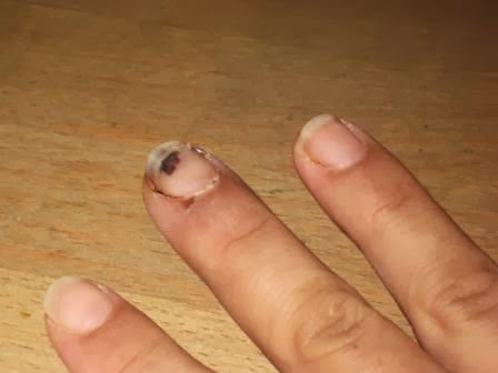 O dedo não está nada belo, mesmo nada, mas tive que optar por tirar o penso para que recupere mais rapidamente. A natureza a trabalhar por si.