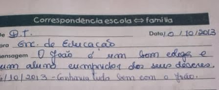 Se há pessoas que necessitam de reforços positivos, essas pessoas são os meus gémeos. Com a ida para o 5º ano os meus receios aumentaram, porque a sua autoestima nem sempre é muito positiva. Mas, a directora de turma tem dado uma ajuda incrível, ao escrever elogios ao bom comportamento na caderneta. O João ficou radiante com o elogio.