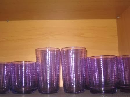 Os copos são uma coisa que parto com facilidade cá em casa. De quando em vez, ou bato com eles contra a banca da cozinha, ou voam, nem sei como, para o chão. Os copos cá em casa, que tinha a uso, era um de cada nacionalidade; os restos de conjuntos que fomos comprando. Queria copos lisos, para que os desenhos não saiam com as lavagens na máquina. Conseguimos comprar novos a um preço incrível no Jumbo: 18 copos - 5,99€ e giros, lisos e com uma cor que gosto.