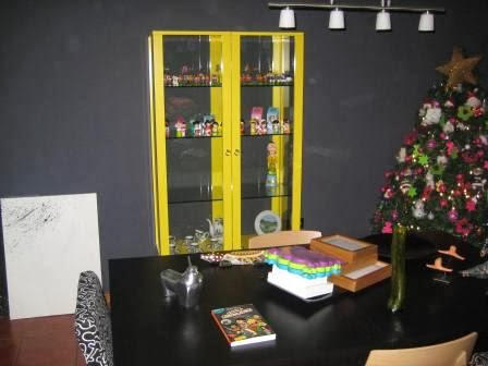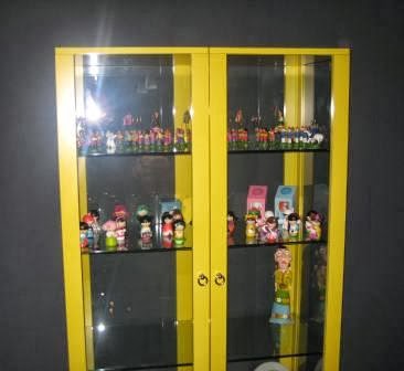 Desta vez, pusemos o papel de parede e um móvel novo, onde podemos colocar as nossas peças favoritas. As minha Momiji agora têm um lugar de destaque.