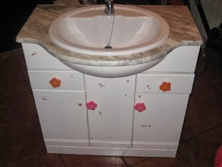 A casa-de-banho pequena também sofreu alterações. Tirámos o velhinho móvel branco e colocámos um com umas linhas mais modernas.