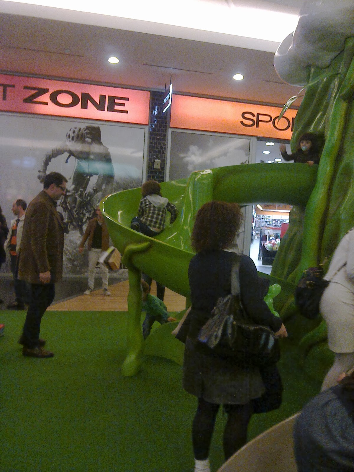 Desta vez fomos ao Espaço Guimarães, talvez o shopping que mais gosto, dos que conheço (e, conheço muitos!). Uma vista de olhos pelos saldos, compras no Jumbo, jantar no Burger King (adoro aqueles hamburgers. Na minha opinião muito melhores que os do MacDonalds). Mas quem se deve ter divertido mais foi o Afonso. Colocaram lá um parque infantil, o Feijoeiro Gigante, fantástico. Os miúdos adoram aquilo. Tem um escorrega fantástico. O Afonso é fã de escorregas e aquele não o deixou indiferente.