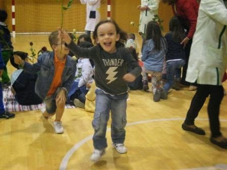 Comemos bolinho juntos, e o príncipe ainda começou a choramingar. Lá o convenci a ficar e a brincar com os amiguinhos, o que não tardou em fazer. Quando vim embora, corriam de um lado para o outro, todos juntos.