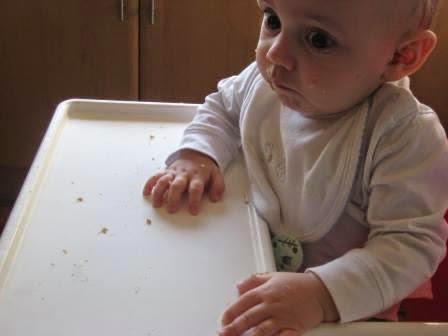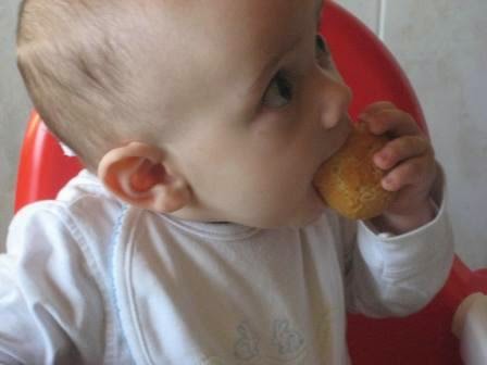 O Mini ama pão. Geralmente só lhe damos migalhinhas à boca, género passarinho. Mas alguma vez tem que aprender mais, e comer sozinho o seu pão. Por isso, pão na mão, eu sentada ao pé dele, e pronto, esperar que a experiência corra bem.