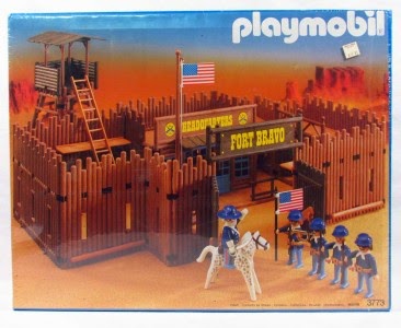 Desde pequeno que o meu marido tem um sonho; um sonho de criança. Sempre gostou de brincar com Playmobil e o seu sonho era ter o Fort Bravo da Playmobil. Ontem, fomos ver a feira de artigos em 2ª mão lá no burgo. Bem, numa caixa, meio escondida, vimos peças de Playmobil. Decidimos ver que seria e eis que descobrimos o Fort Bravo, mas o antigo, tal como ele tanto quis. Não tem as peças todas, mas está quase, quase completo.