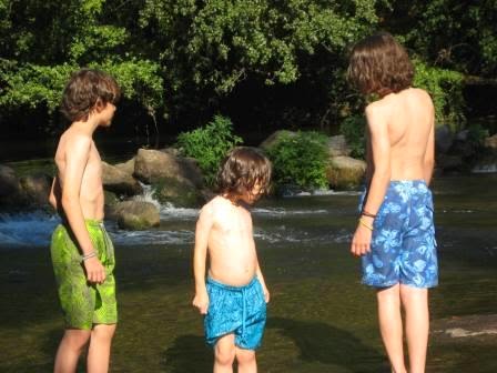 Ontem, ao final do dia peguei nos gémeos e no Afonso e fomos até ao rio. Isto é a vantagem de ter praias fluviais perto de casa.