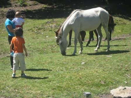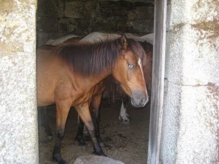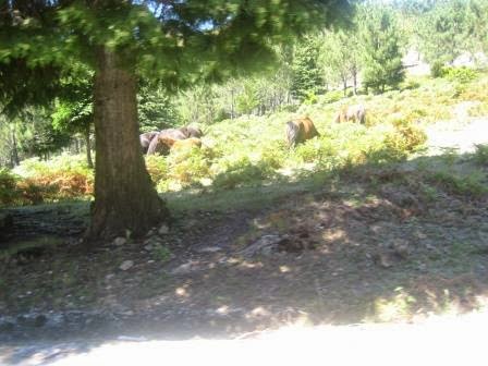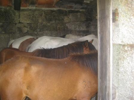 Do outro lado da estrada 4 garranos estavam abrigados num pequeno abrigo, mas depois sairam, talvez para nos cumprimentar. O Mini adorou ver cavalos.