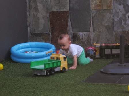 No Sábado, com sol e calor, mas com o Afonso doente, as minhas saídas ao exterior mantiveram-se pelo quintal. O Mini não se importa e adora brincar naquele espaço.