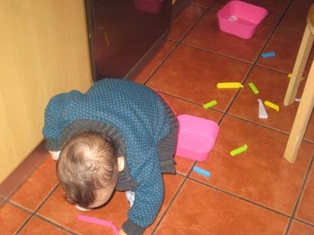 Mini em ação em janeiro 23, 2015 Obter link Facebook X Pinterest Email Outras aplicações Brincar com os plásticos. Brincar com as pegas. As molas dos sacos são dos seus brinquedos favoritos, passa-as de umas caixas para outras. Desarrumar as revistas e voltá-las a pôr no lugar. Comer cereais com as colheres da salada. Comentários
