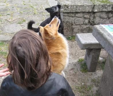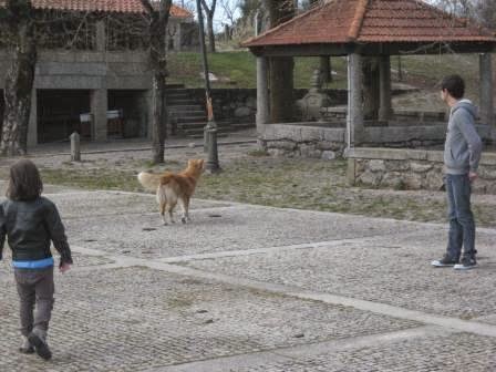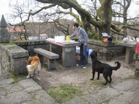 A companhia chegou mal nos acomodámos. Dois cães acompanharam todo o nosso almoço. Na serra o tempo não estava quente, 13º, que nos fizeram vestir os casacos e fechá-los bem fechados.