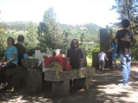 Os príncipes aproveitaram para jogar um pouco à bola. Explorámos o local, refrescámo-nos com a água que corria numa fonte, água bem fresquinha da montanha. E ficámos com pena de não ter feito ali mesmo o piquenique.