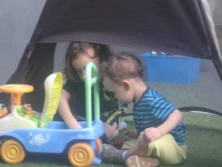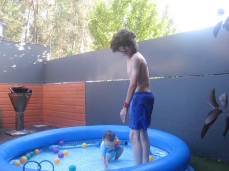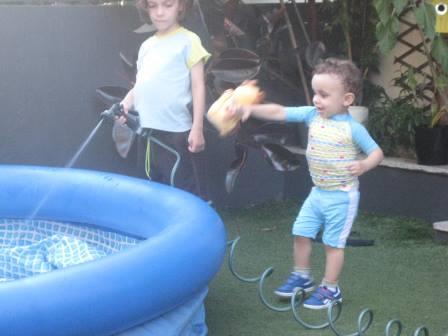A primeira vez que entrou para a piscina, sem medos e berros.