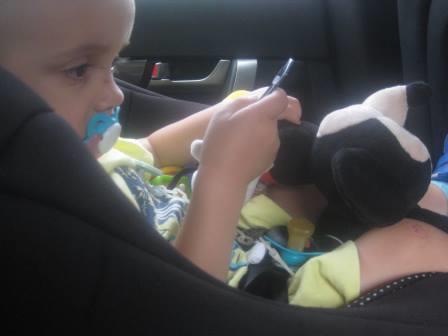 A brincar com telemóvel. O que ele adora! Pelo menos, mantém-no calado... nada de choros!