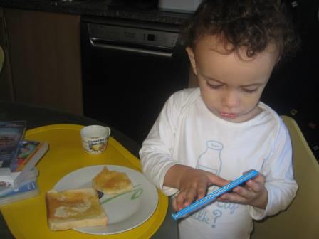 Mini em ação em setembro 24, 2015 Obter link Facebook X Pinterest Email Outras aplicações A tomar o pequeno-almoço. Só estilo!A comer à frente da TV. Que finesse...Isto é o que faz ficar com o pai em casa; até come na sala!!! A brincar."Que penteadinho estou!" A ver televisão: não há mais por onde esticar... Comentários