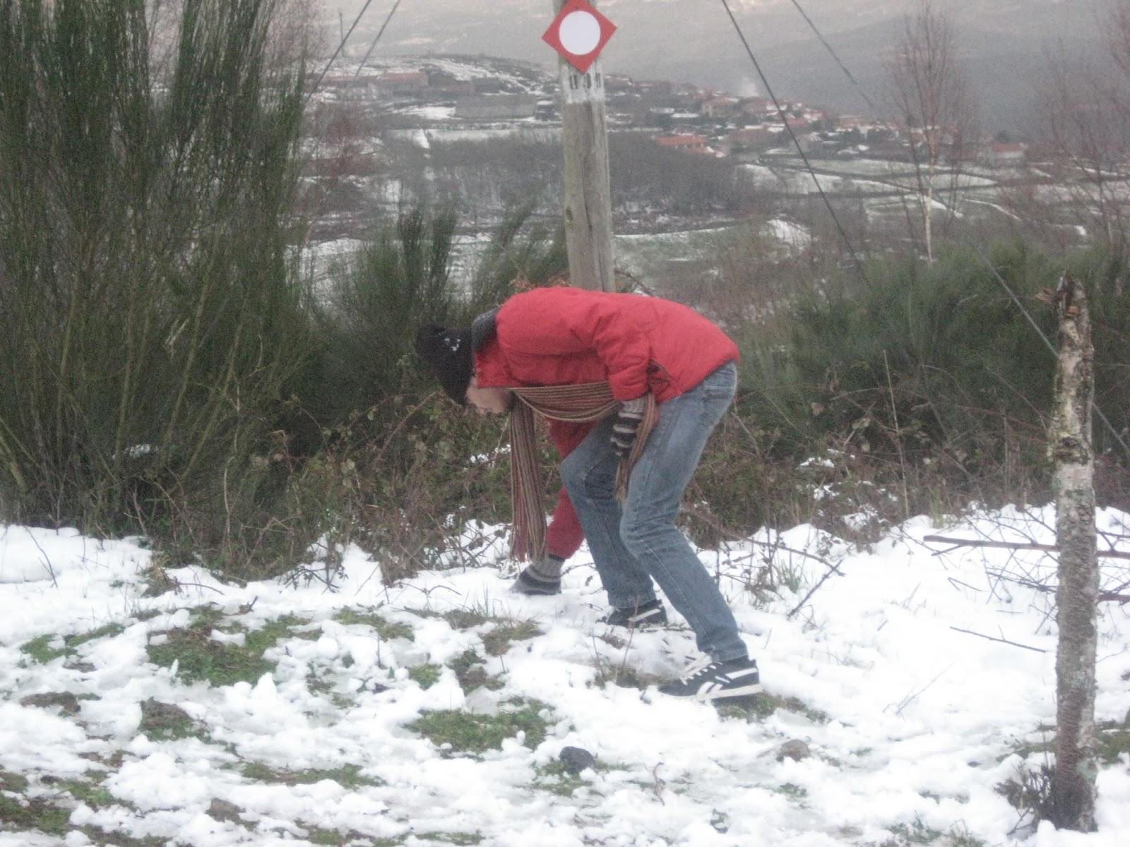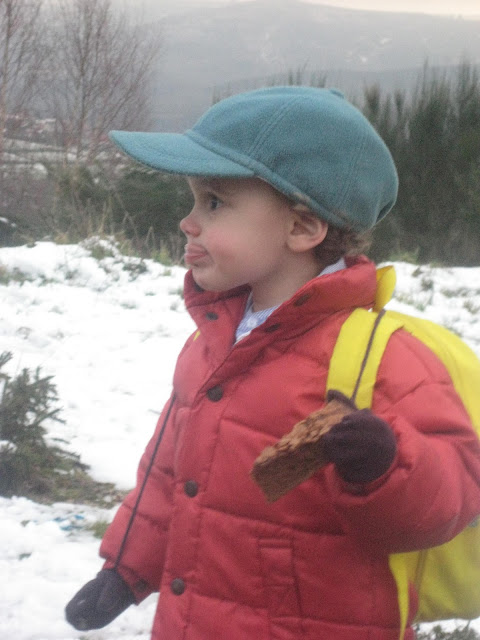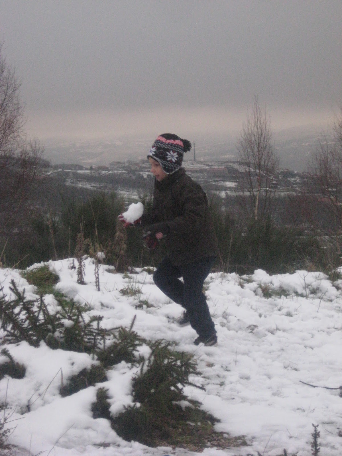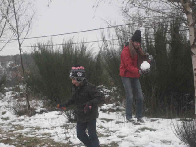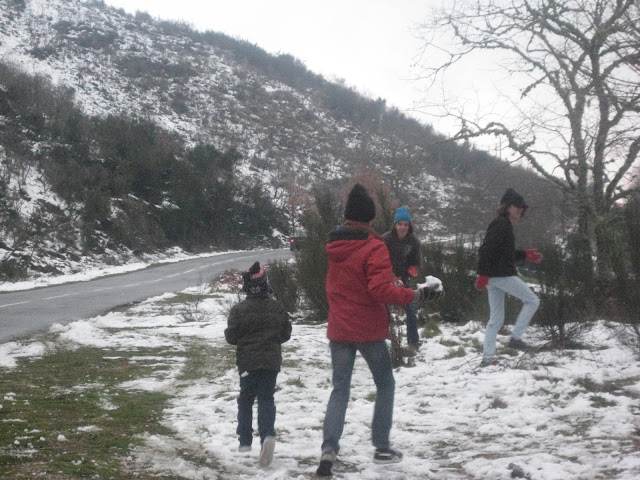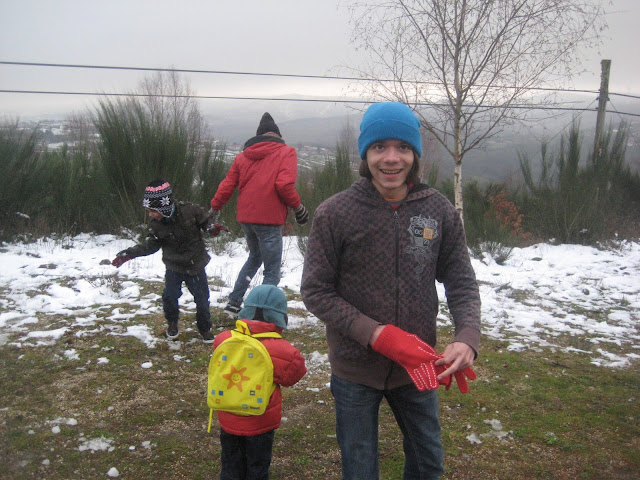 A neve ao longe, parece que sempre longe de nós, parecendo cada vez mais longe. Destino: Pitões das Júnias. A estrada são curvas e mais curvas, e contra-curvas, e... o marido mal disposto! Antes de chegarmos ao nosso destino 2 ou 3 paragens para o maridão apanhar ar e vomitar... Já para desespero de todos, depois de uma viagem mais longa que o previsto, chegámos à neve. Frio, muito frio, mas muita neve também. Os príncipes divertiram-se a valer. Bolas voavam de um lado para o outro. O Mini mais cauteloso, limitou-se a pisar pequenos tufos de neve. O marido... bem, o marido estava mal, muito mal... Pior, se calhar, do que aparentava...