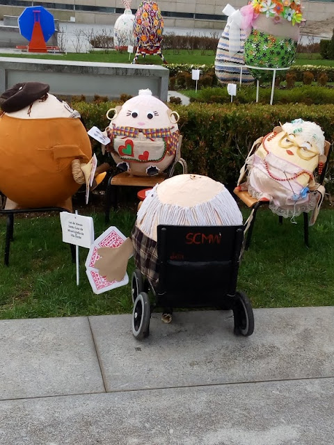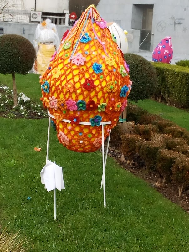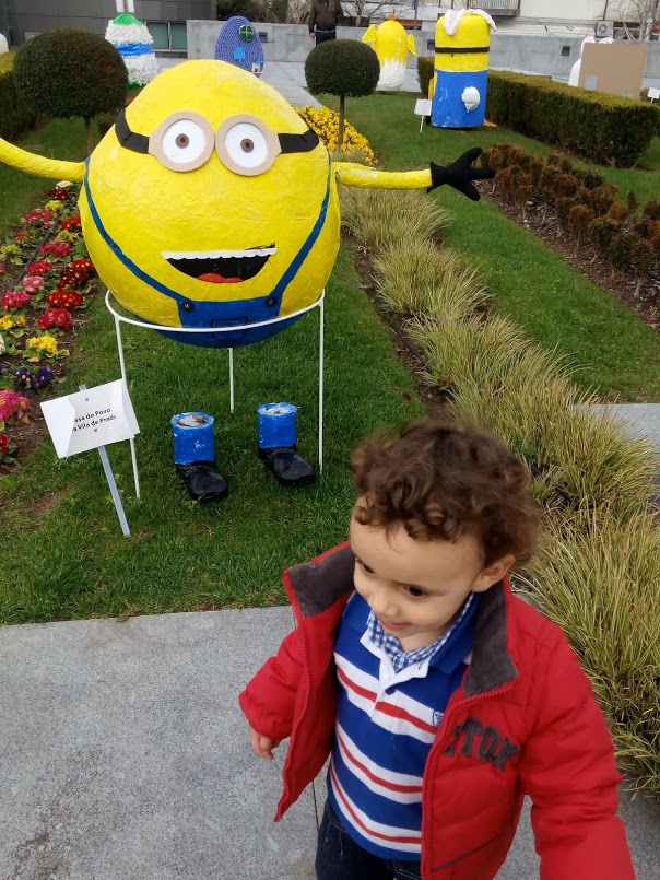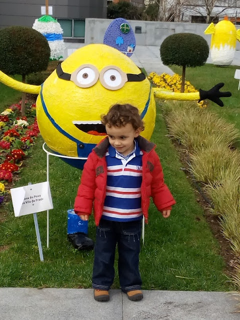 Os ovos de Páscoa dão animação à Praça do Município. O Mini, que costuma ver os ovos do carro, teve a oportunidade de os ver de perto. Descobrimos logo qual o seu favorito: o ovo do Minímo. Dava voltas e voltas, mas ia sempre ver o seu favorito.