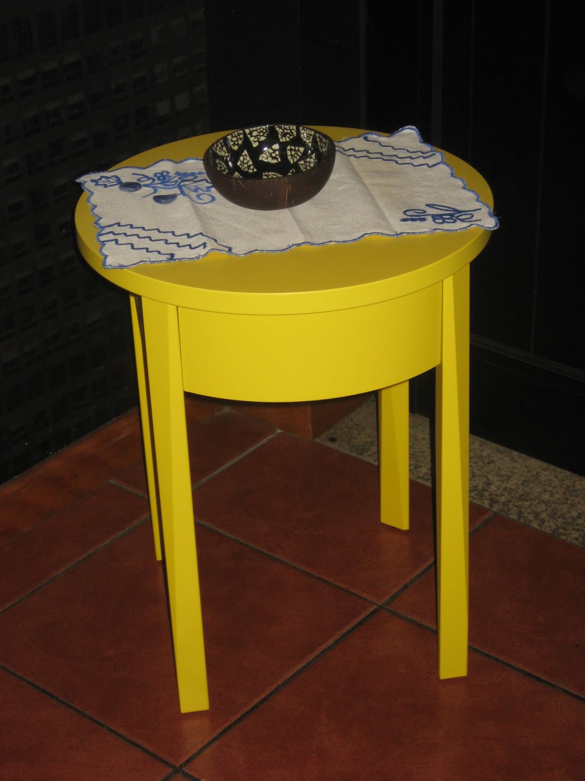 Comprei a nova mesa de cabeceira no Ikea. O pormenor de cor que iria fazer a diferença no nosso quarto. Quando a terminei de montar queria-me meter com o meu marido, que não gosta nada de "paninhos" (como ele diz), e por isso, coloquei-a assim: