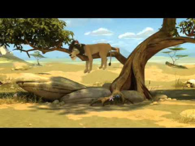 Hoje de manhã, ouvi a música inicial, e lá fui ver a aventura em que o leão se meteu, desta vez com uma hiena.