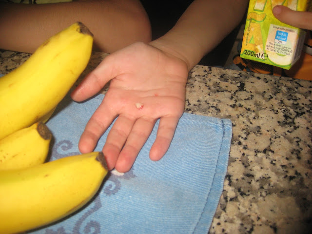 Na hora da comida, caiu um dente ao Afonso, que ficou radiante, pois a Fada Madrinha viria nessa noite (parece que se atrasou um pouco, mas veio!)