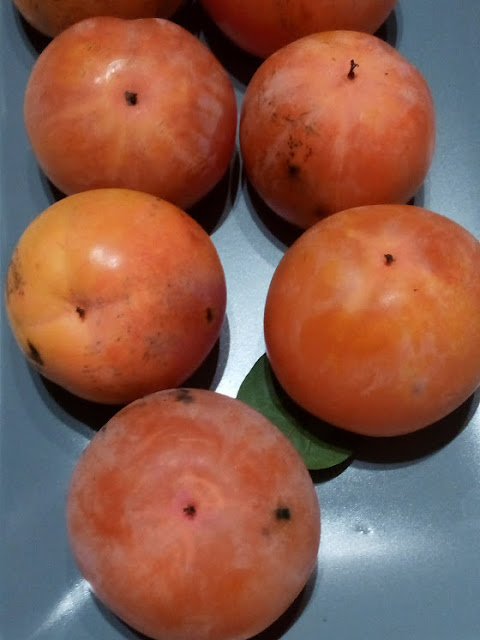 Ontem, o príncipe mais velho chega a casa com um caixote de papelão com o fundo cheio de dióspiros. O nosso vizinho esperou pela sua passagem e ofereceu-lhe dióspiros. Que senhor tão simpático. Não falamos muito com este vizinho, porque ainda vive um pouco distante, mas sempre gostou muito dos meus príncipes mais velhos e foi super simpático com eles. Todos os anos lhes oferece dióspiros e que bons que são...