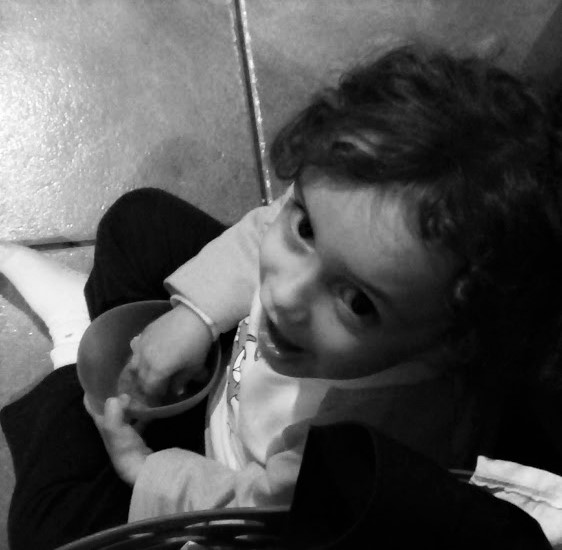 Em cima: a comer romã que a avó trouxe dos feudos de Alcobaça;