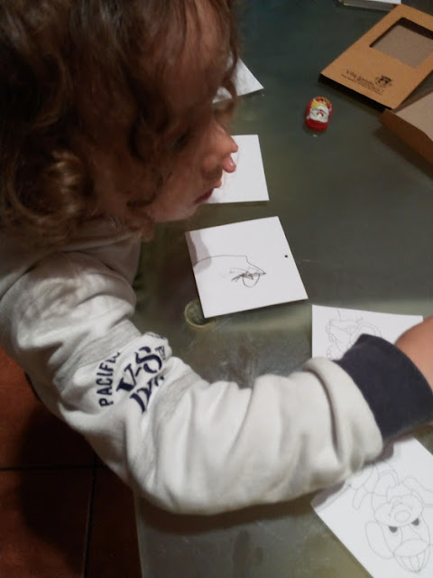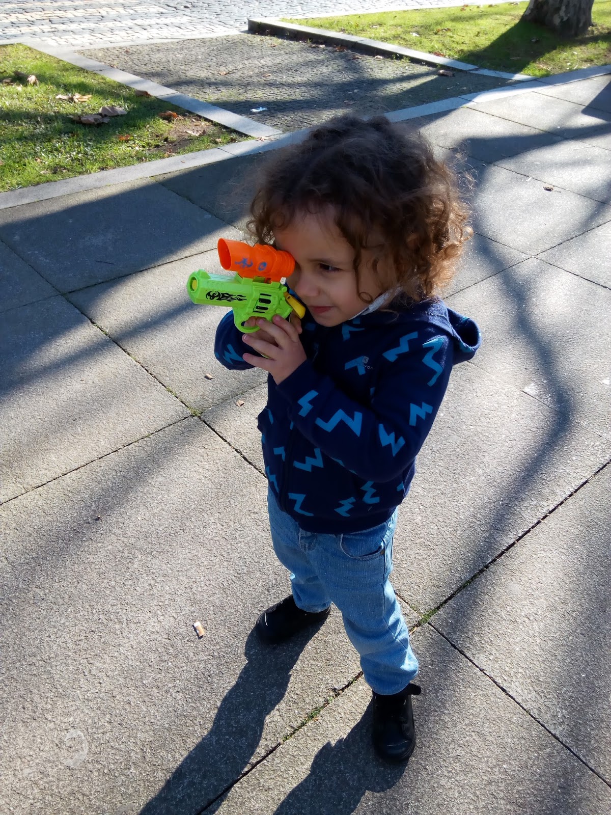 A brincar com os berlindes que eram do pai.