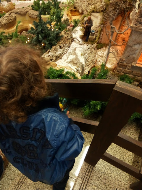 Ele adora ver este presépio.