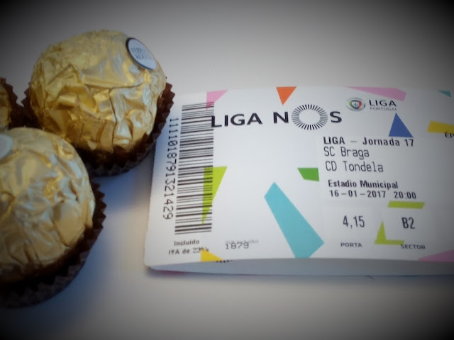 Arranjei os bilhetes para o jogo que o príncipe mais velho tanto queria ver: Braga - Tondela. 4 bilhetes. O Tiago queria ir, mas estava doente, o Afonso recusou, o João também. Bem, o pai decidiu levar com eles o Mini. Assim, todo feliz, lá foi pela primeira vez ver um jogo de futebol, num grande estádio.