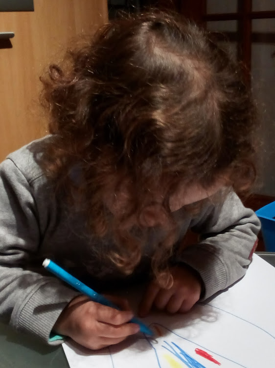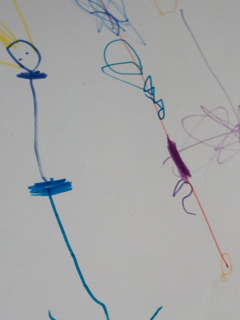 O Mini adora desenhar, adora pintar. Tem-se notado uma evolução grande nos seus desenhos. Faz sempre trabalhos muito limpos para uma criança de 3 anos. Gosta de escolher algumas cores, e escolhe principalmente marcadores, antes de começar a desenhar. São as cores inicialmente escolhidas que vai utilizar nos desenhos que fizer.