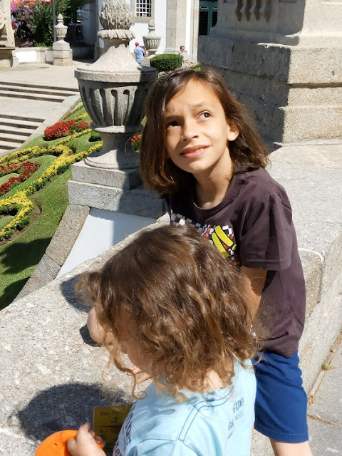 No final, toca a descer o escadório. Os príncipes não se importaram nada com a experiência e optaram por descer sobre as laterais do escadório, com o auxílio dos pais. Uma diversão.