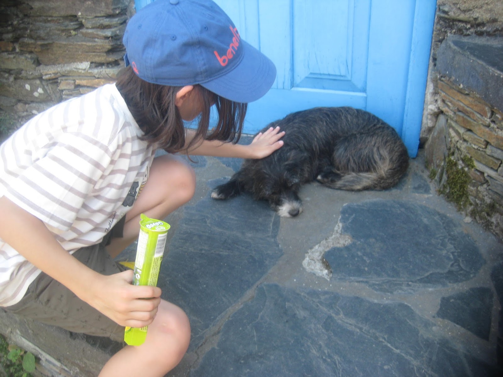 Um pequeno canito dormitava numa sombra. Nem se mexeu na nossa passagem. Mais tarde descobrimo-lo noutro local, próximo do dono talvez, onde o Afonso aproveitou para lhe fazer festas.