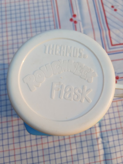 Um termo lindo, vintage (1987), para líquidos frios e quentes, em perfeito estado. Acho que nunca foi usado.