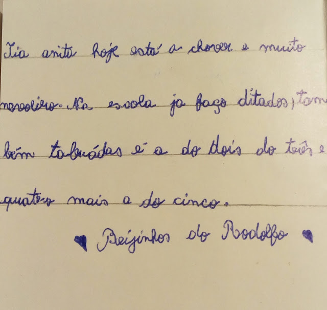 A última vez que fui a casa da minha mãe descobri umas caixas cheias de postais de aniversário e de Natal. Na caixa dos postais de Natal descobri este postal que o meu sobrinho me enviou à muitos anos. Ele deveria ter 7 anos. Que relíquia. Que tesourinho com tanto amor. ❤❤